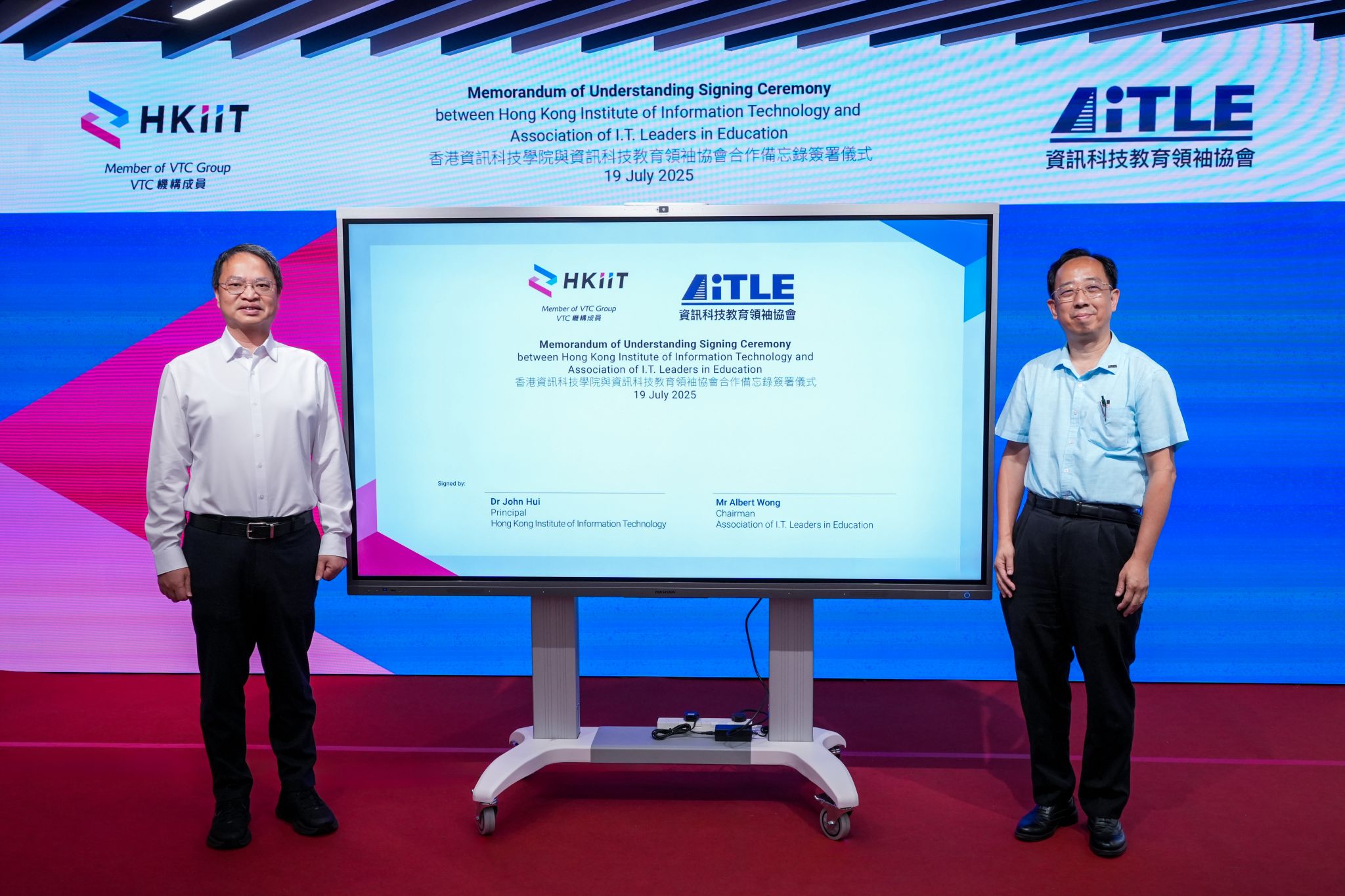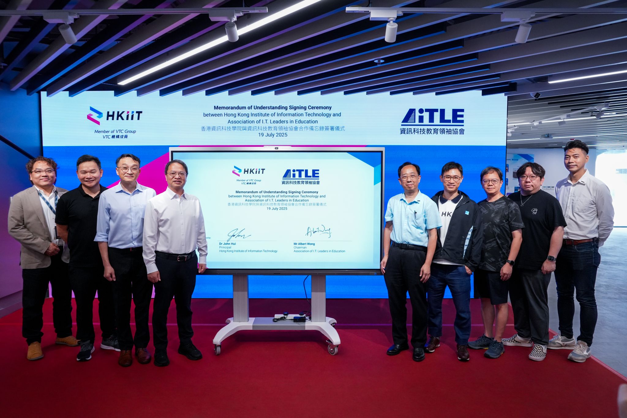 香港資訊科技學院(HKIIT)與資訊科技教育領袖協會(AiTLE)於7月19日簽署合作備忘錄(MoU),建立策略性合作夥伴關係,攜手推廣職業專才教育(VPET)!