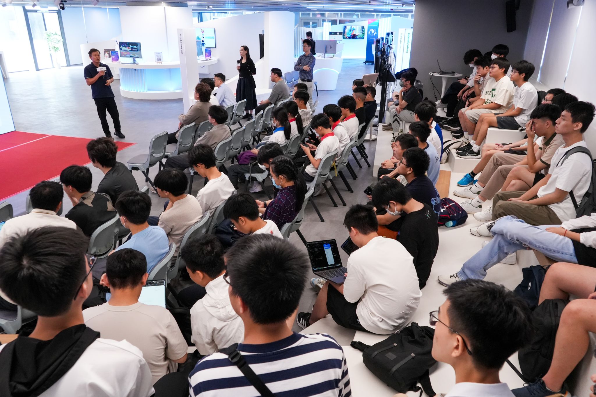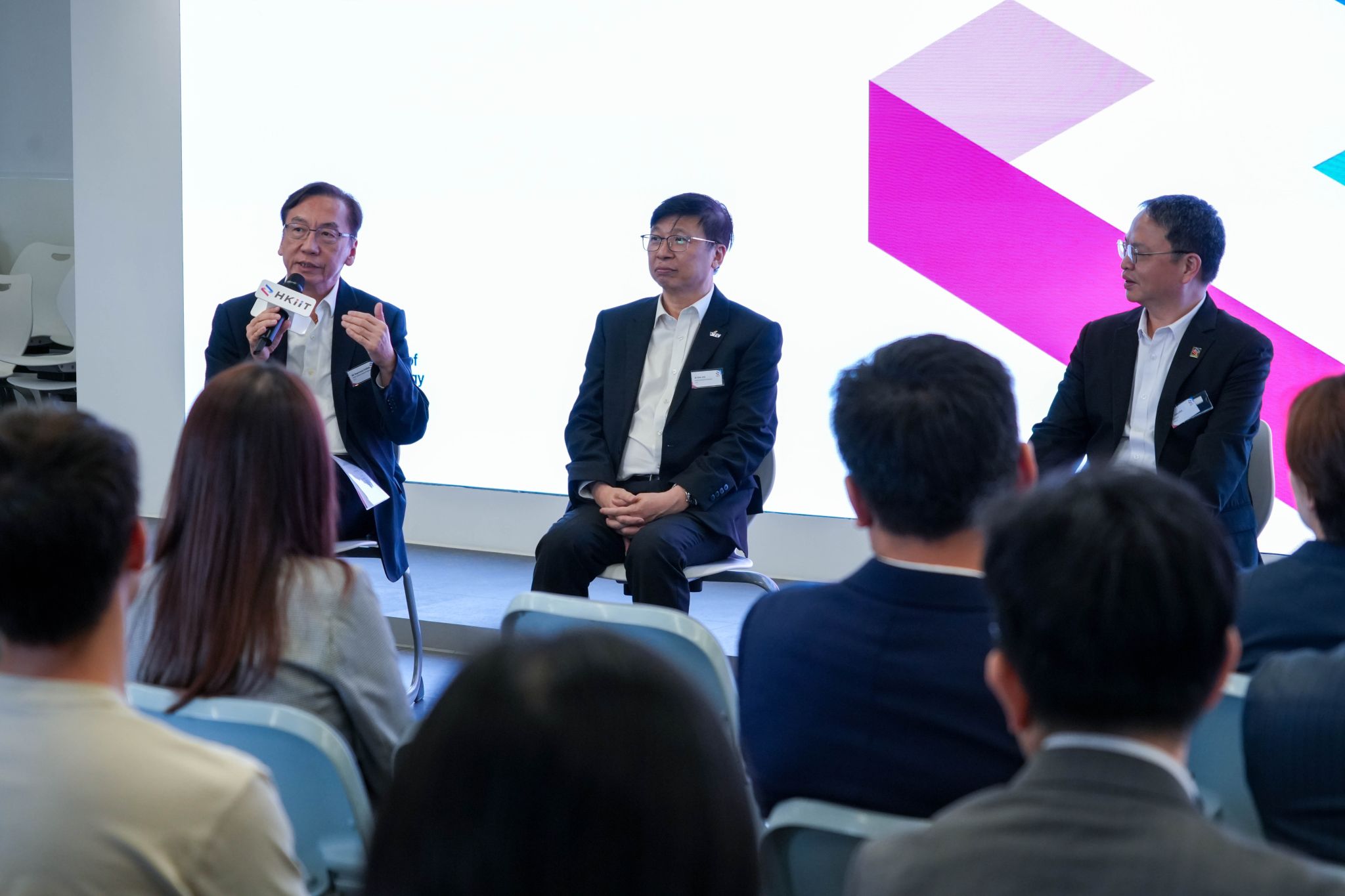 HKIIT 電訊及網絡科技高級文憑課程的李晉亨同學亦於分享環節中,與中學生們分享了他寶貴的學習經驗,以及奪得 CISCO APJC NetAcad Riders Competition 金獎的心路歷程。課程主任馬穗華先生亦介紹了課程內容,並分享了有志投身 IT 行業的學生可把握的機遇。