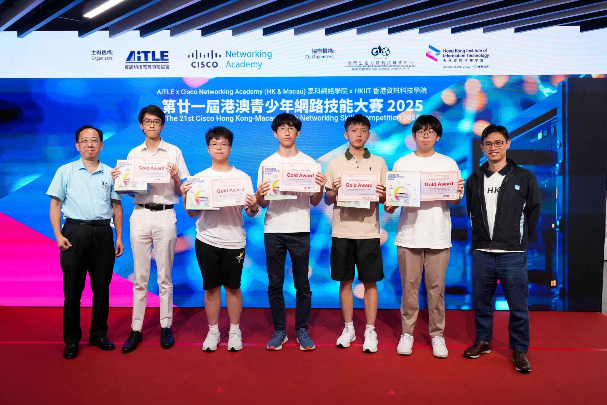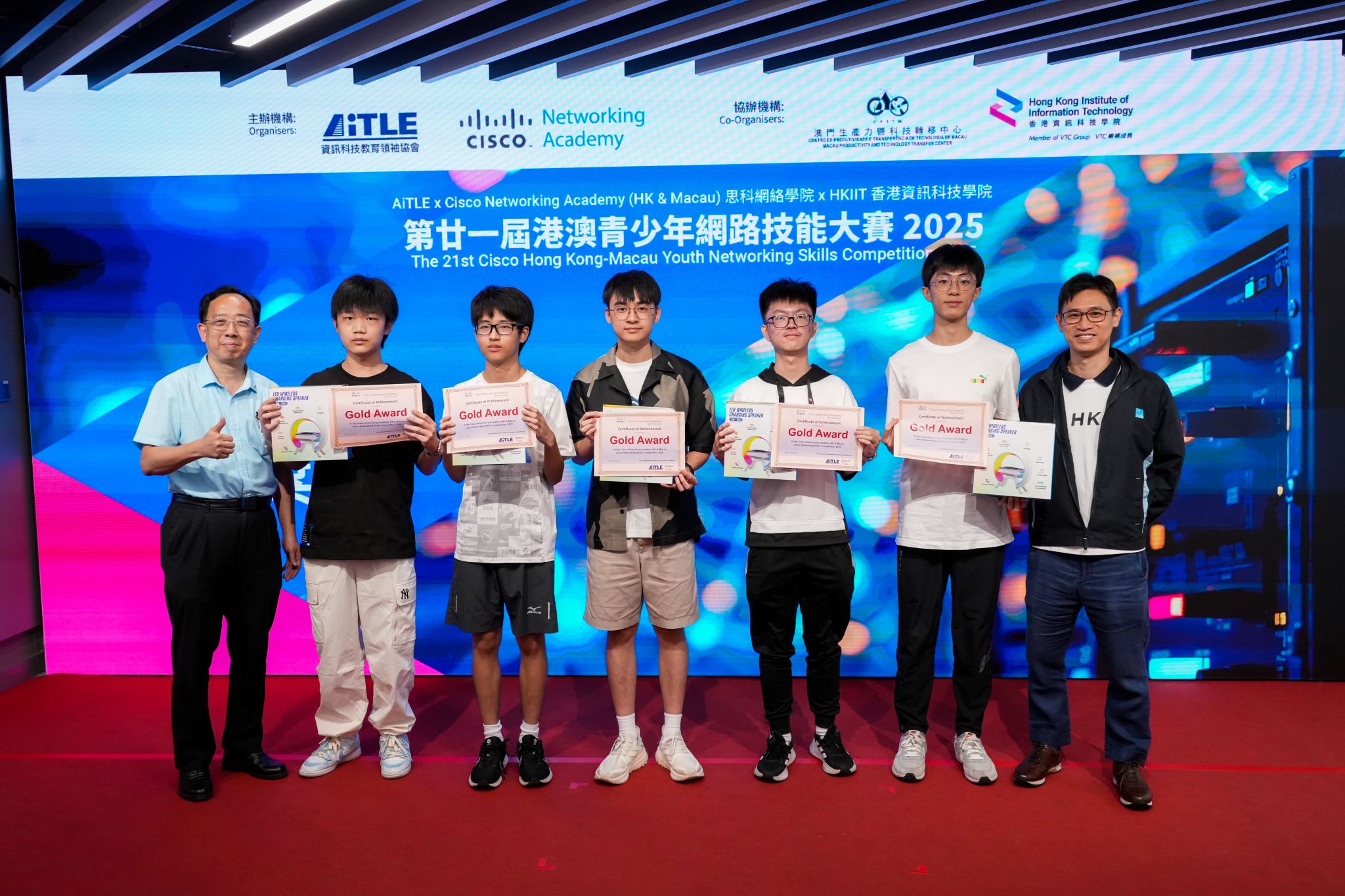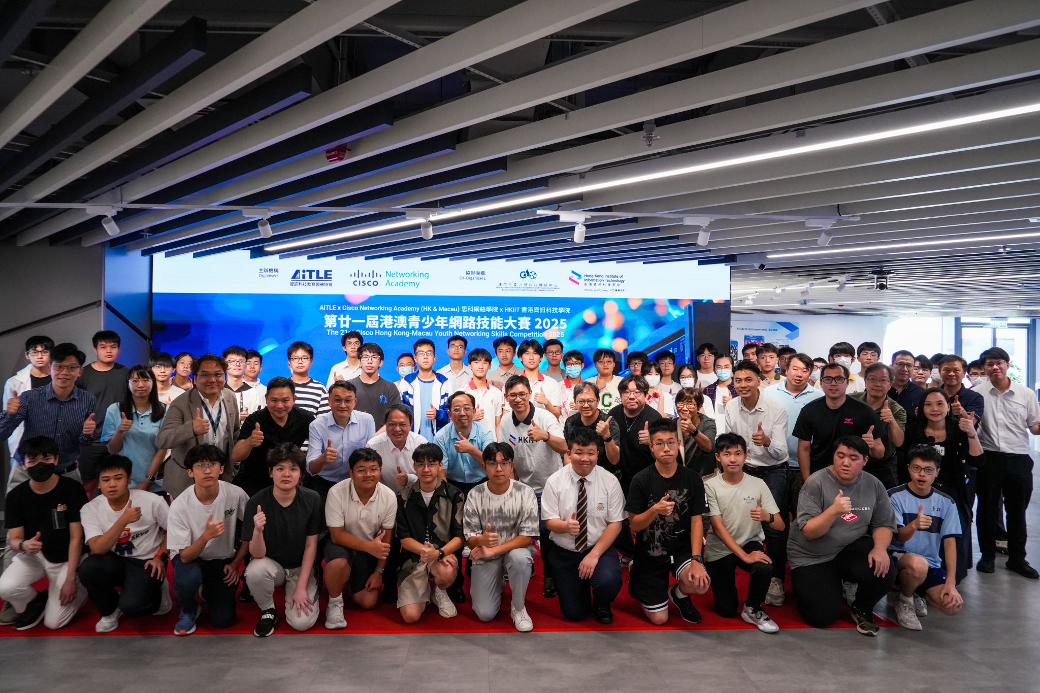 此外,HKIIT 與 AiTLE 聯同 Cisco Networking Academy 及澳門生產力暨科技轉移中心,同日成功舉辦了 「第廿一屆港澳青少年網路技能大賽 2025」。活動於 HKIIT 數碼創新科技中心舉行,超過 60 位來自香港及澳門的中學生展示了他們在網絡技能方面的才華與熱誠。