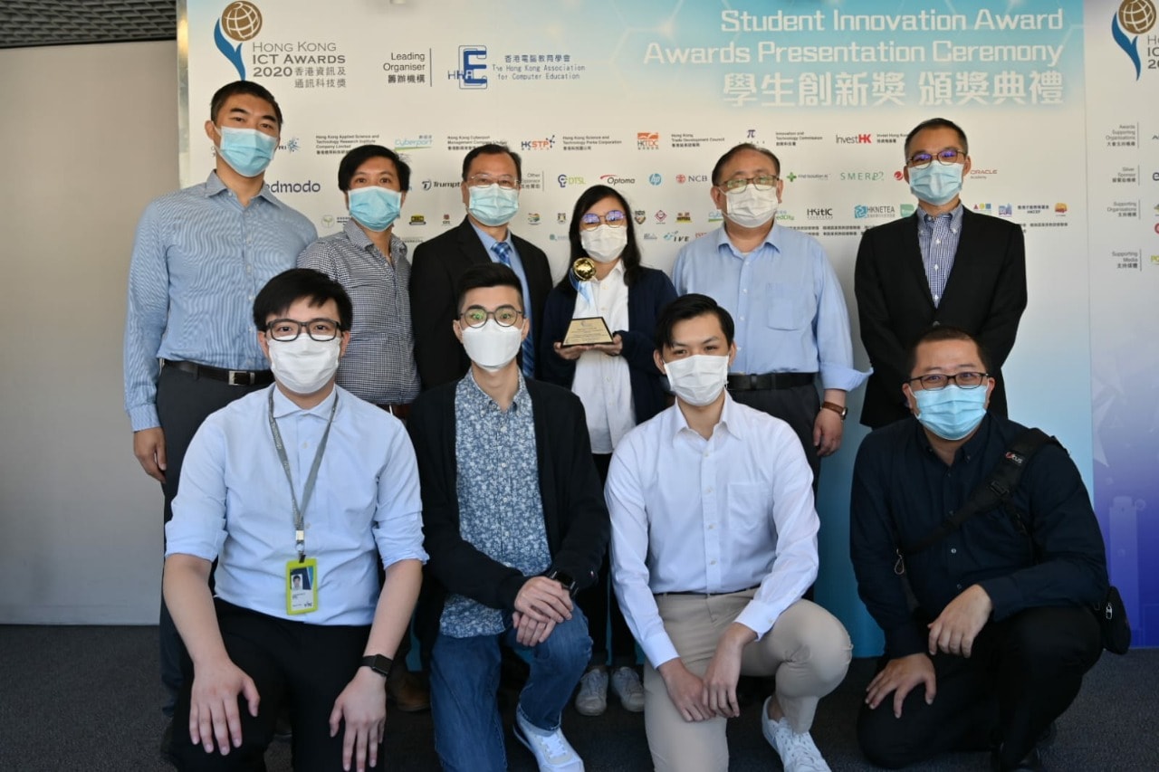 新冠疫情全球肆虐,各地院校紛紛轉為網上教學,惟導致學習進度及質素大減,影響學生學習興趣。香港專業教育學院(李惠利)的4名同學發明「擴增實境AI黑客助教」,透過虛擬助教提升網上學習的效率和氣氛,榮獲「香港資訊及通訊科技獎:學生創新獎」大專及本科組金獎。
