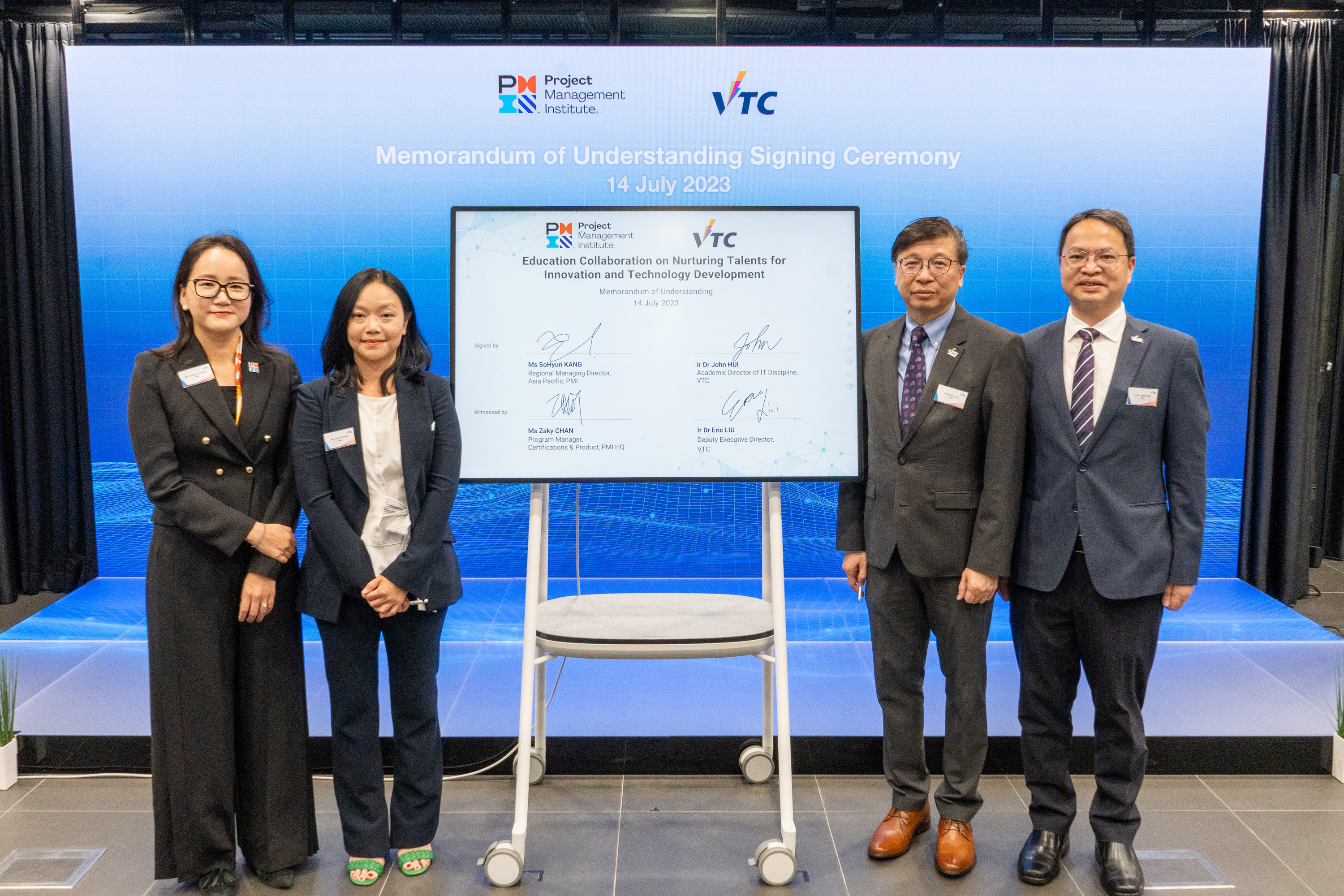 職業訓練局(VTC)資訊科技學科 與 Project Management Institute(PMI)於2023年7月14日簽署了一份合作備忘錄(MoU),以合作應對香港創新科技領域的技能缺口。VTC與PMI的合作將專注於培養人才,彌補技能缺口,並支持香港智慧城市倡議的發展。該合作將使職前和在職專業人士都能提升和重新學習技能,確保他們能夠滿足行業不斷變化的需求。