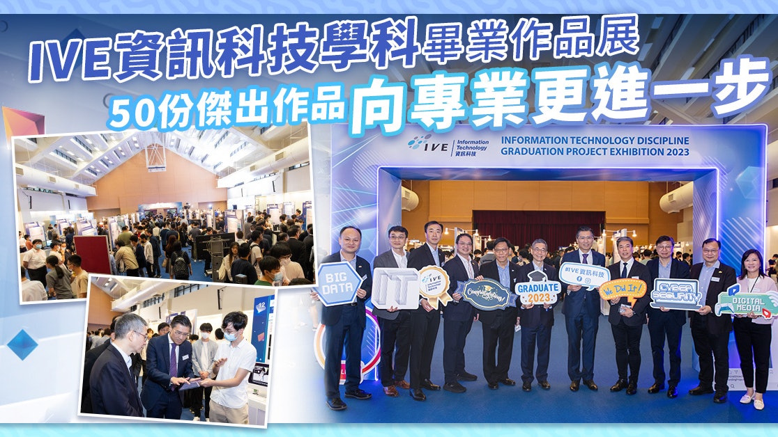 IVE資訊科技學科一直致力為社會培育資訊科技專才,配備學生實務技能和創新精神,並於6月16日舉行本年度的「資訊科技學科畢業生作品展覽」,展出共50份傑出畢業生作品,由VR體驗到運用光雕投影的藝術科技,作品種類百花齊放。展覽為畢業生提供一個向外界展示作品的機會,更為各界人士提供交流平台。主禮嘉賓立法會科技創新界議員邱達根,樂見畢業生獲業界青睞,冀IVE能繼續培養人才,攜手推動香港資訊科技界更進一步。