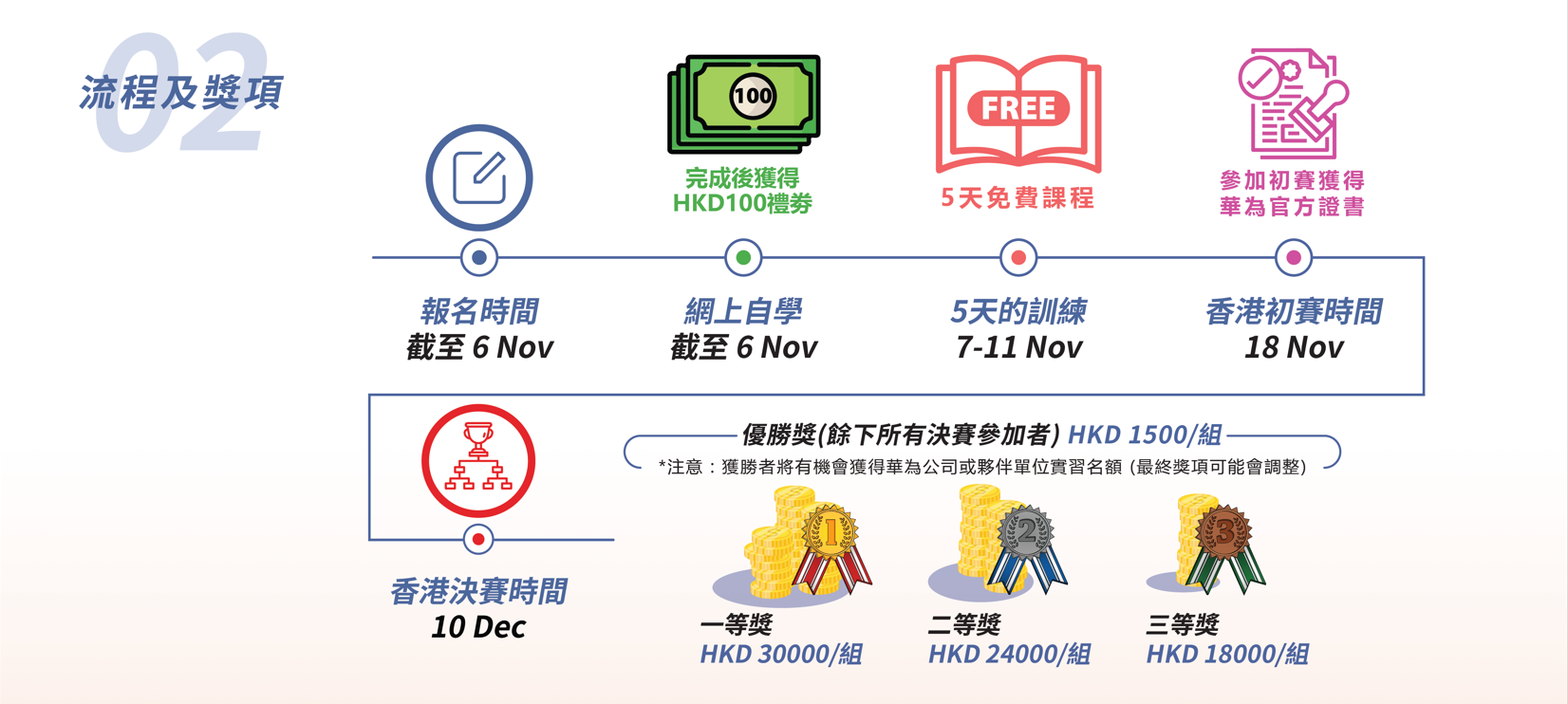 去年香港學生隊伍在華為ICT大賽全球賽榮獲佳績,除了得到豐富的獎金獎品,更有參賽者獲得在華為工作的機會。有見及此,ICT比賽(雲賽道)於今年再度歸來,現已接收報名,比賽詳情請參閱海報及登錄此報名鏈接報名,截止日期為11月6日。期望能在比賽裡遇見勇於挑戰的你!