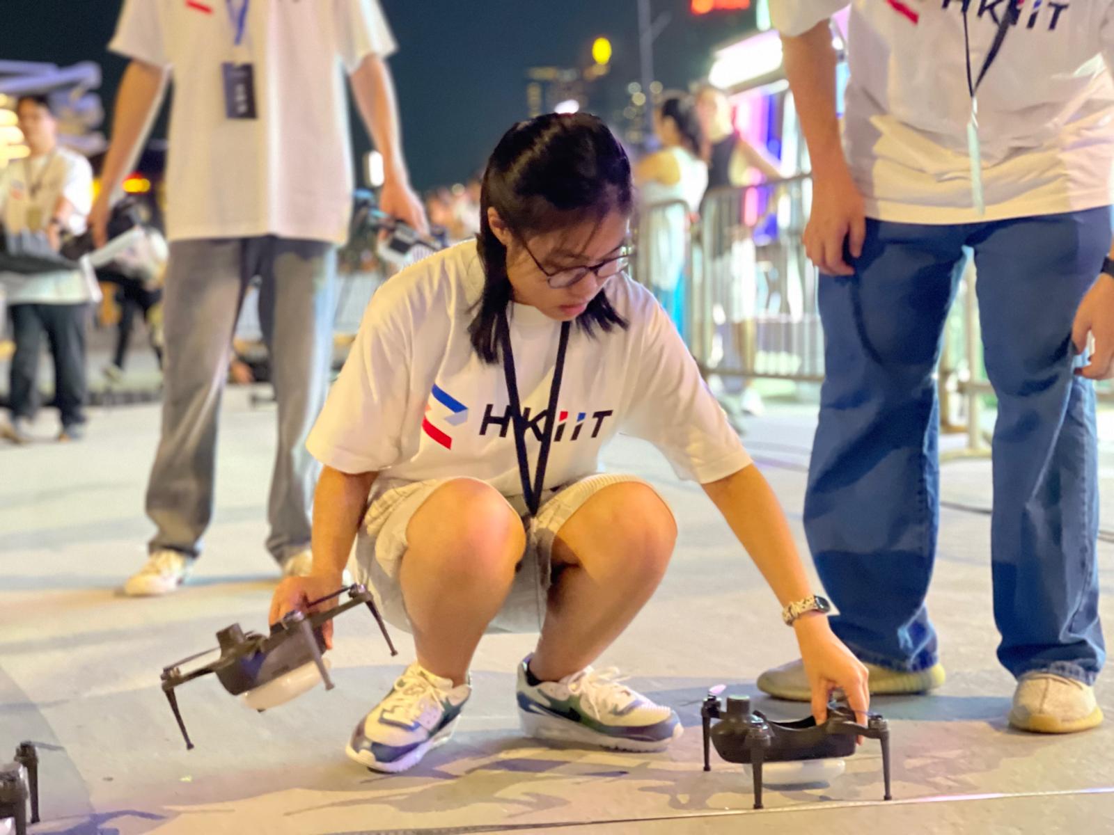 Students from HKIIT’s "Games and Animation" and "Theme Park and Theatre Creative Technology" higher diploma programmes had the opportunity to observe the workflow, production, rehearsal, and performance of the large-scale drone show. They assisted in the drone configurations, participated in equipment debugging, testing, and rehearsal drill, ensuring a smooth performance of the event.